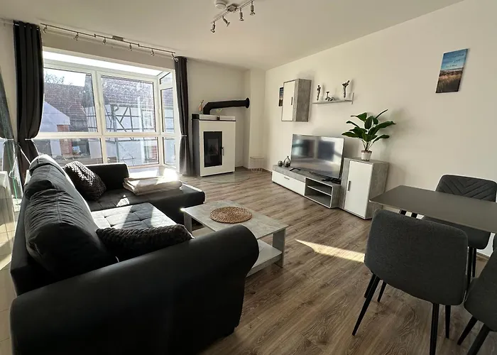 To enjoy your vacation in Berlstedt, stay at Ferienhaus Weimarer Land Berlstedt, which is 3.5 km from the Ettersburg Castle and around 10 minutes' drive from the Weimar Transmitter. Access to hiking and cycling is offered for active guests.